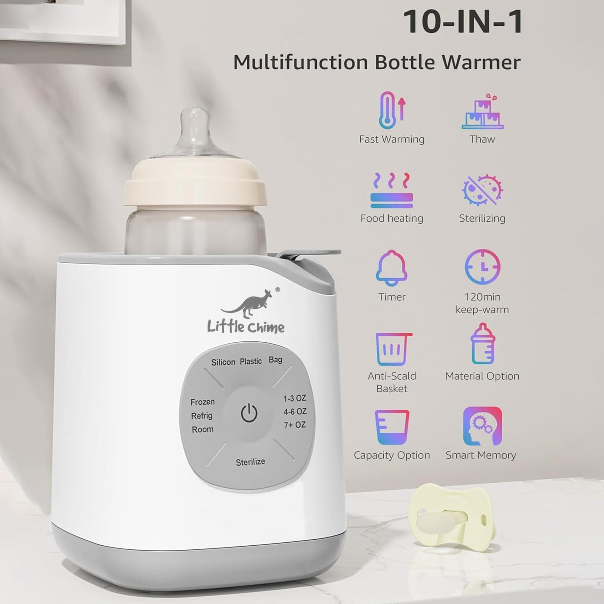 - 10-in-1 Bottle Warmer for Babies: This multifunctional bottle warmer for babies combines 10 features in one device, including milk warming, thawing, sterilizing, and food heating—making it the ultimate parenting essential.