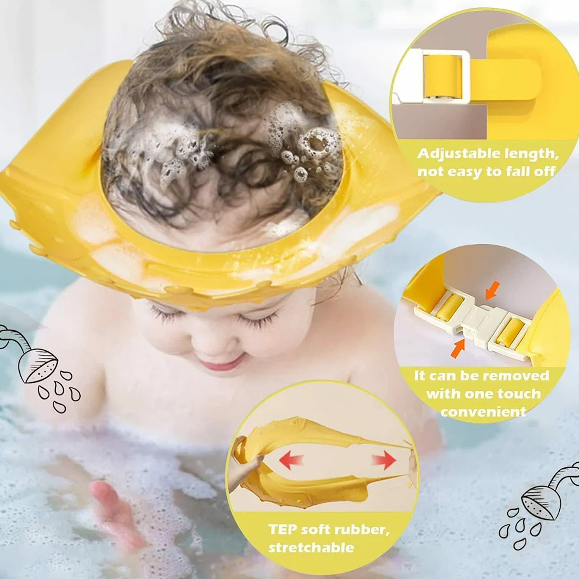 - 👶 Easy To Clean Multifunctional Shower Cap: Our baby shower cap is non-absorbent and easy to clean, just rinse with water. This shower cap is also great for haircuts and shades, making it the perfect gift for Children's Day, Christmas and birthdays.