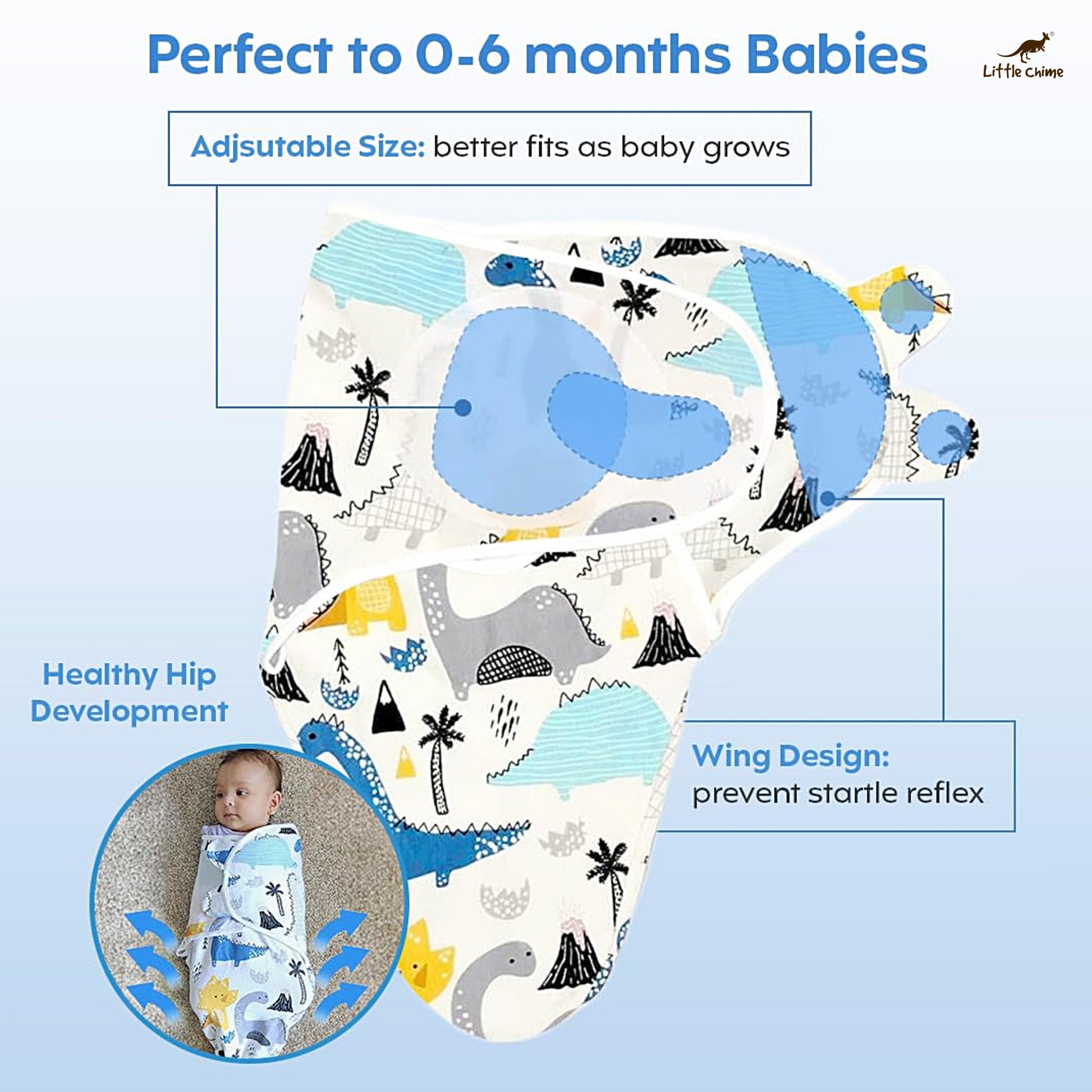 - ENHANCE SLEEPING TIME: Get more sleeping time for you and your crying baby with our velcro swaddling wraps. Create a soothing and nurturing womb-like feeling for your little baby and prevent the startle reflex. Keep them safe, sound, snug and comfy all day and night long.