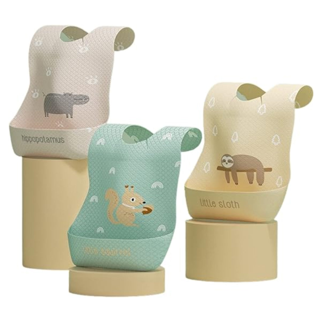 - Skin-Friendly Non-Woven: Our disposable bib is made of fabric. The first layer is skin friendly non-woven fabric, with a polymer absorbent layer in the middle and a PE breathable and leak proof lining on the back. Keep baby clothes clean and dry at all times