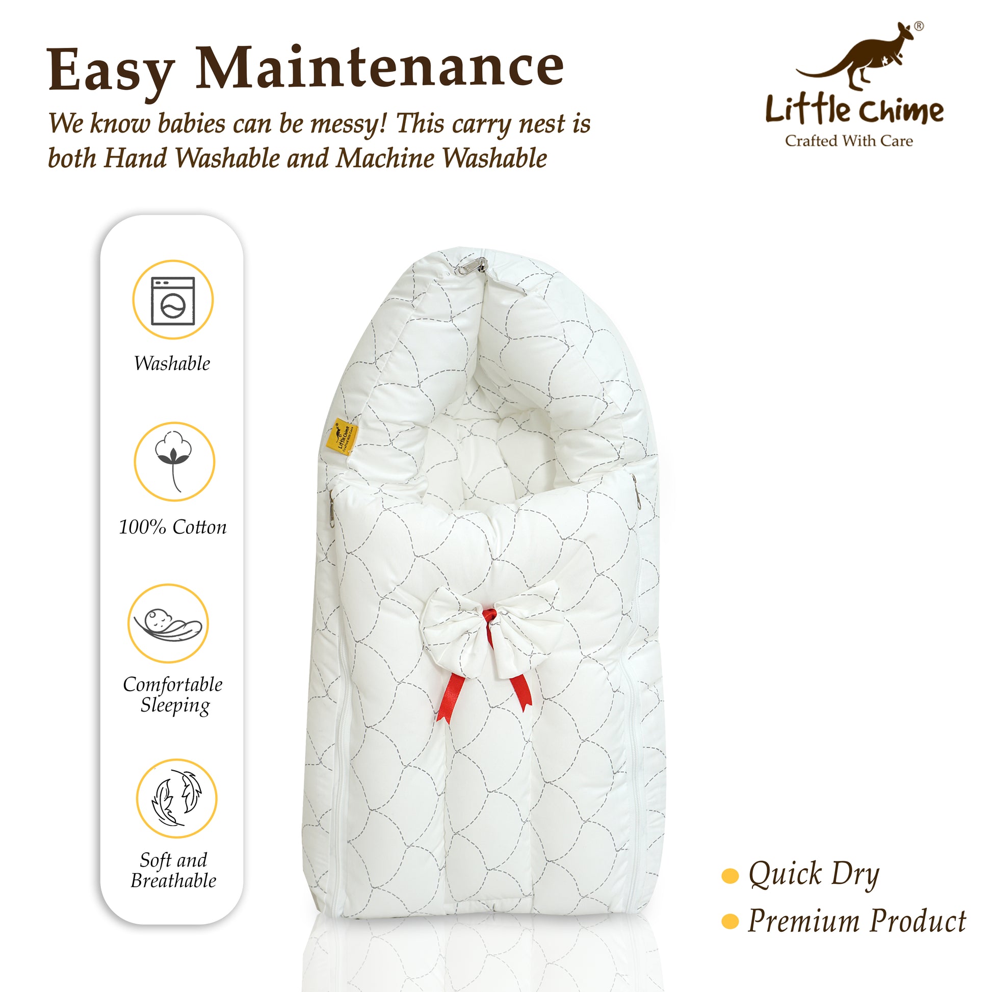 Give your baby the ultimate comfort and protection with the LittleChime Baby Carrier Bed. Thoughtfully designed with soft, breathable fabric and plush cushioning, this carrier bed ensures a safe, warm, and soothing environment for your newborn.