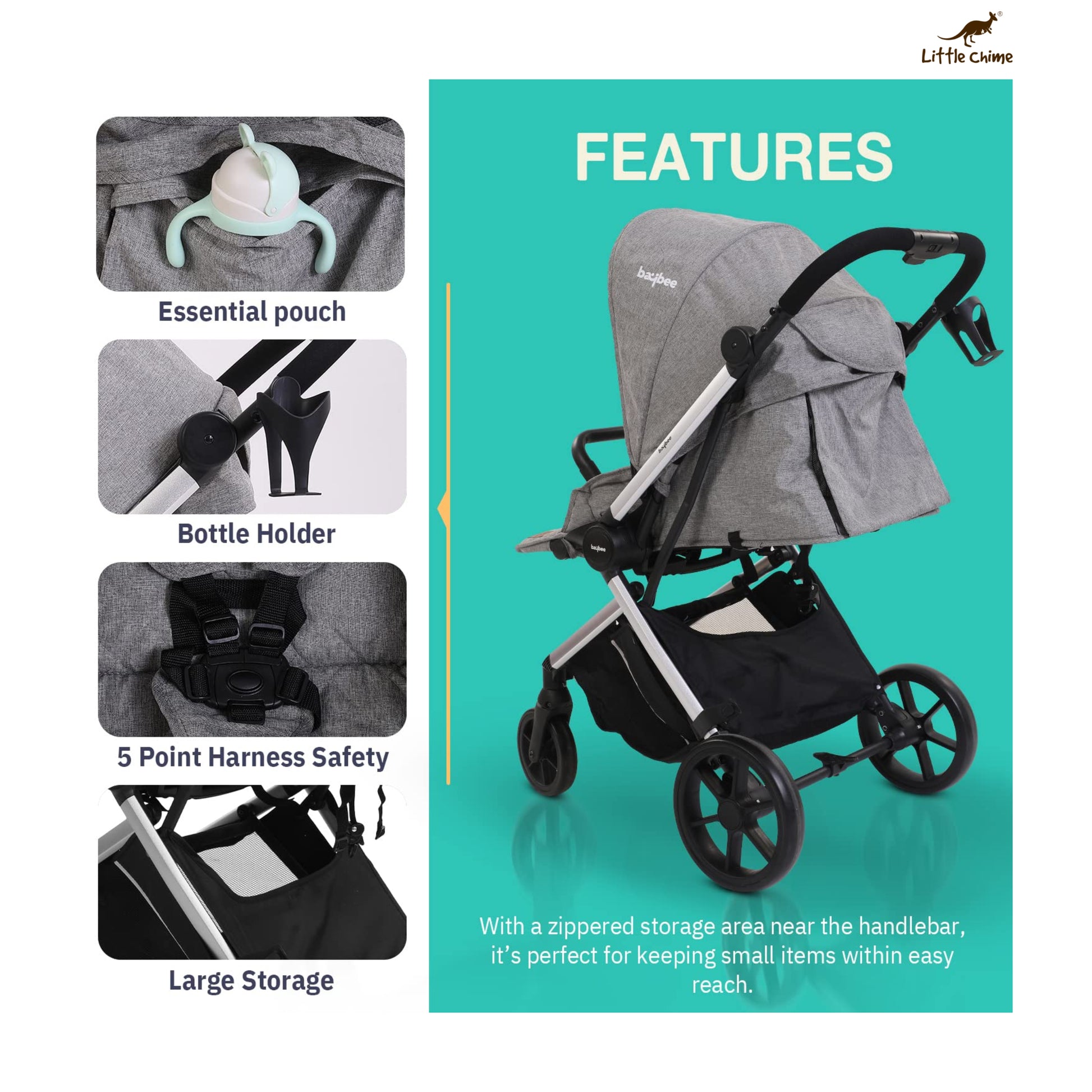 - 【Reversible Seat】: The reversible seat allows you to encourage your baby to observe the outside world by letting him/her face outside. Likewise, it’s convenient for you to communicate with your baby when the seat is facing you. More importantly, the 5-point harness fits the babies’ bodies while ensuring their safety.