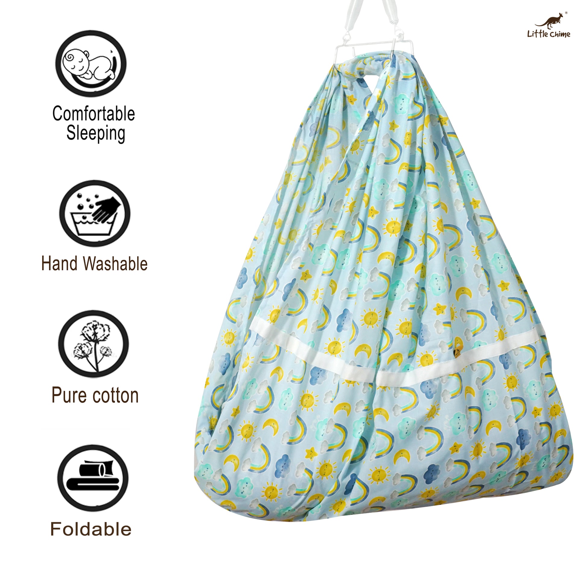 Designed with both comfort and hygiene in mind, the LittleChime Cradle Cloth is your go-to choice for creating a safe and healthy sleeping space. The soft, ventilated cotton fabric ensures that your baby sleeps soundly, while the machine-washable design makes it effortless to keep clean.
