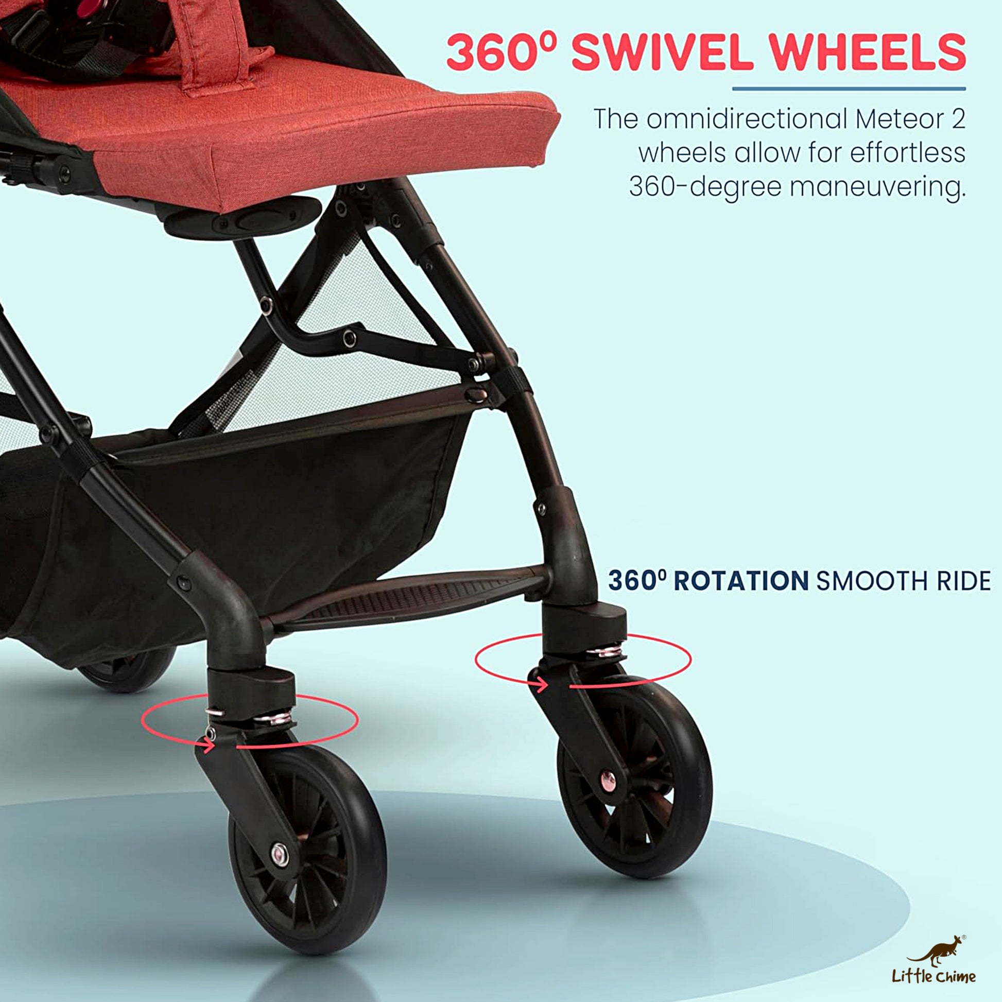 - All-Terrain Wheels: This baby stroller glides easily with shock-absorbing wheels and 360° swivel front tires for smooth rides.