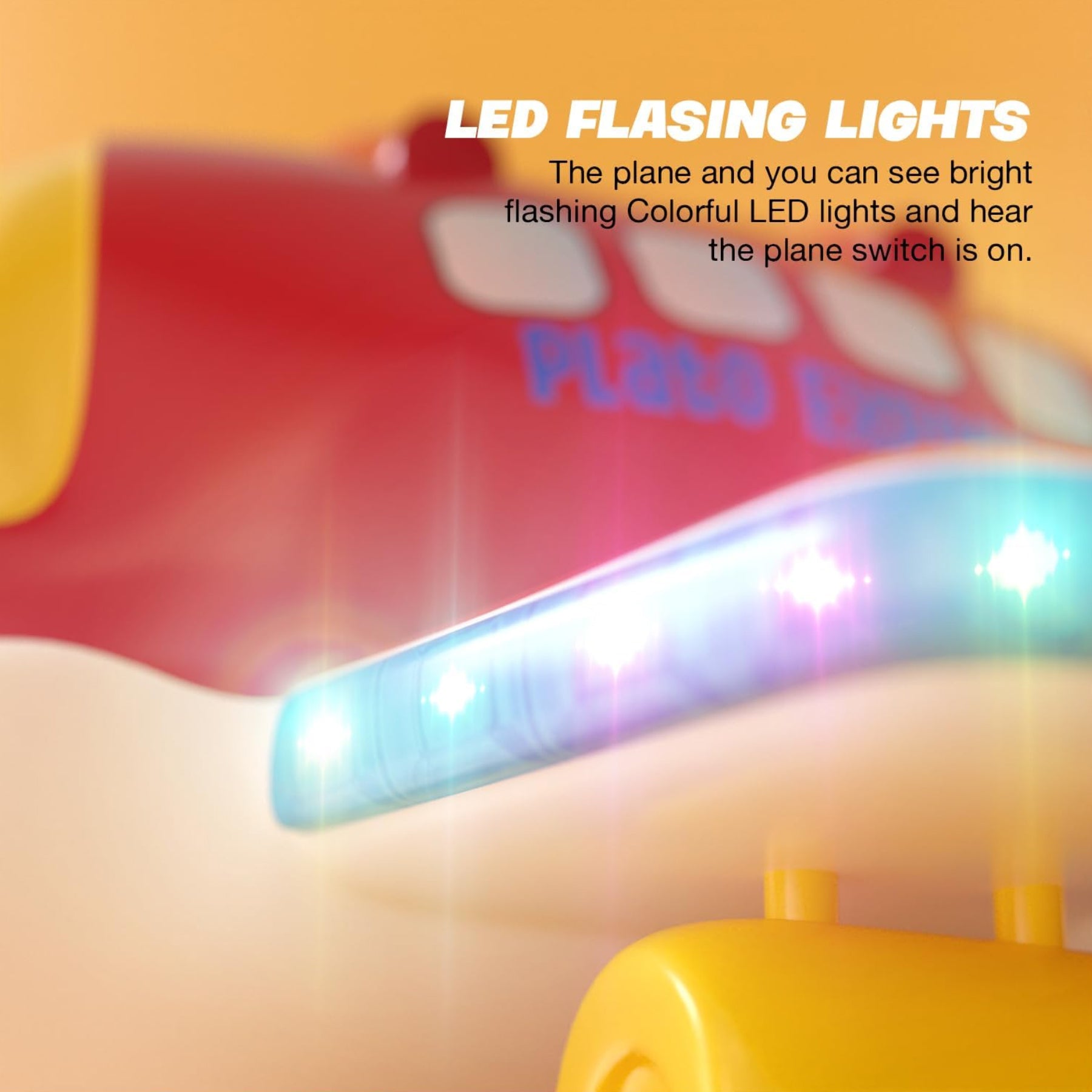 - ✈️Awesome Fun First Musical Aeroplane: Funbee Plato Express Baby Musical Toy for kids is adorable design with brilliant color and realistic sound effect including Rattle, amazing flashing LED lights, and Rotating 360 Degree, Aeroplane toys greatly help your kids develop color recognition, hand-eye coordination, fine motor skills, imagination & creativity, concentration. Each little one loves this Toy and is completely obsessed with baby toys full of fun.