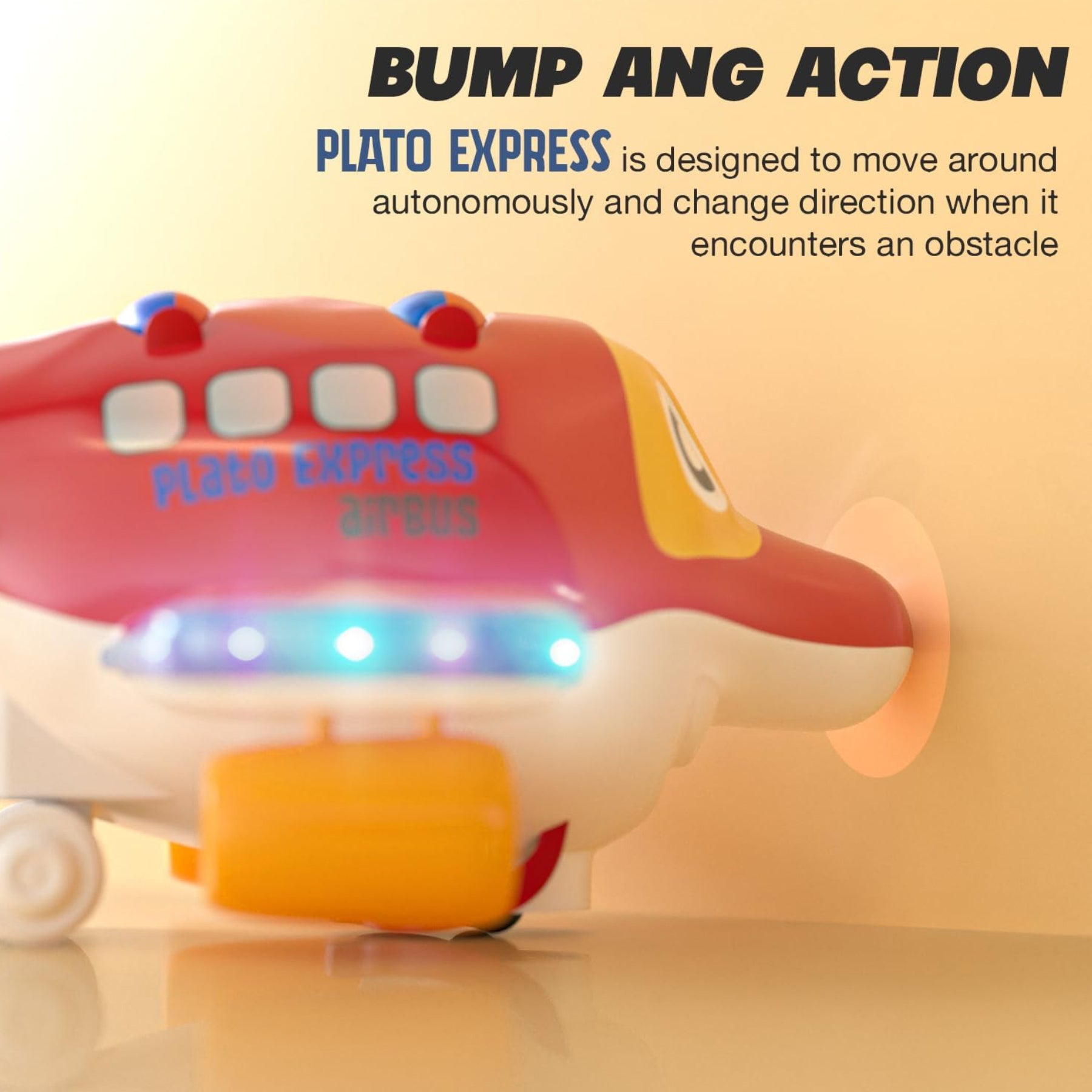 - ✈️Material Safe & Bump and Go: Our Funbee Plato Aeroplane baby Musical toy is an advanced modern toy that has a Rotating fan, it will change its direction and rotating 360 Degrees. Moves well on hard surfaces, floor, wood floors, and tile, electronic Baby Airplane Toy is very steady & can survive falls and crashes, 100% Non-Toxic BPA Free Long lasting baby toy.