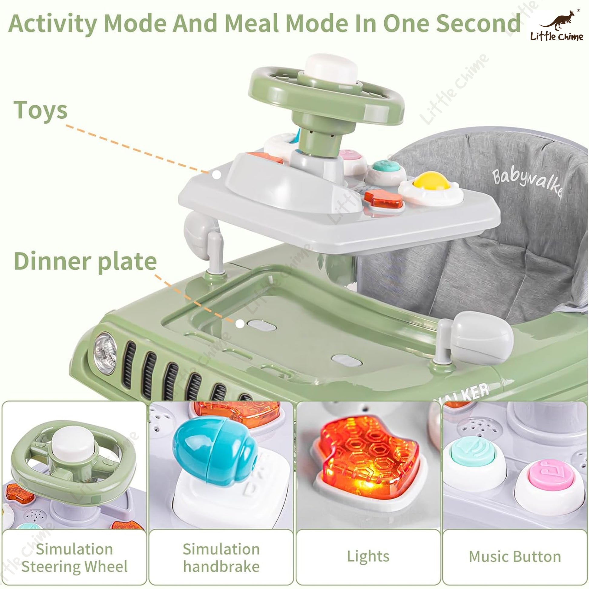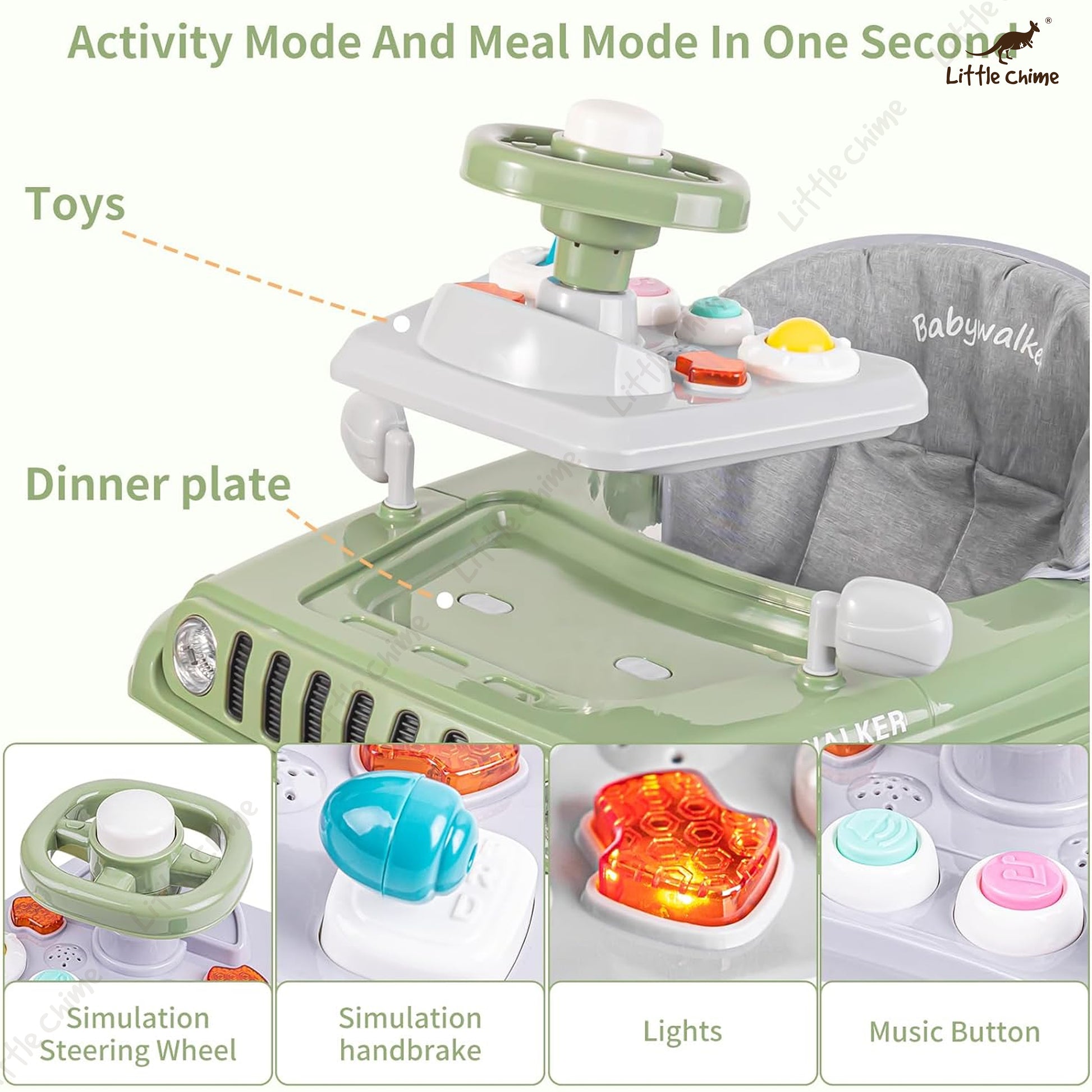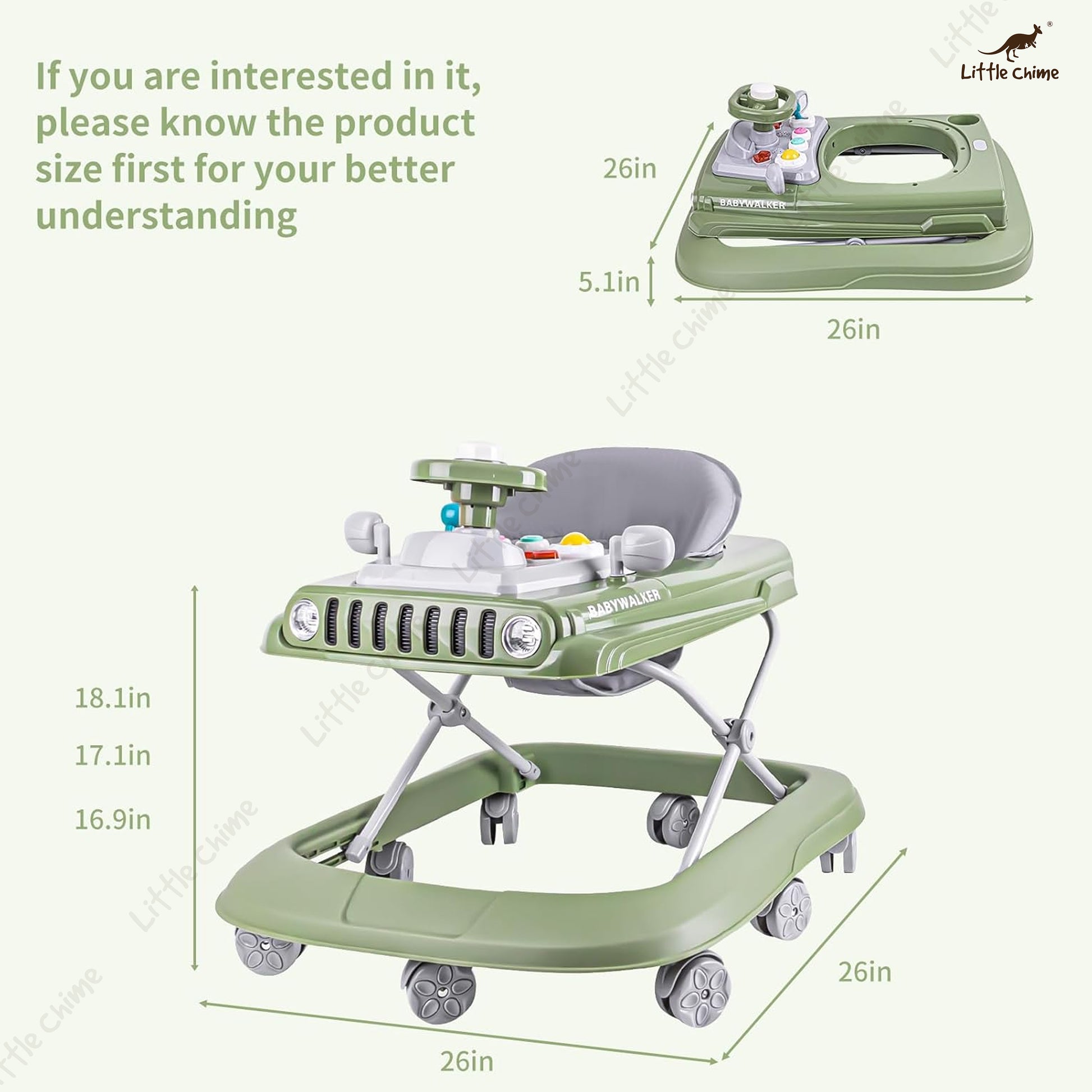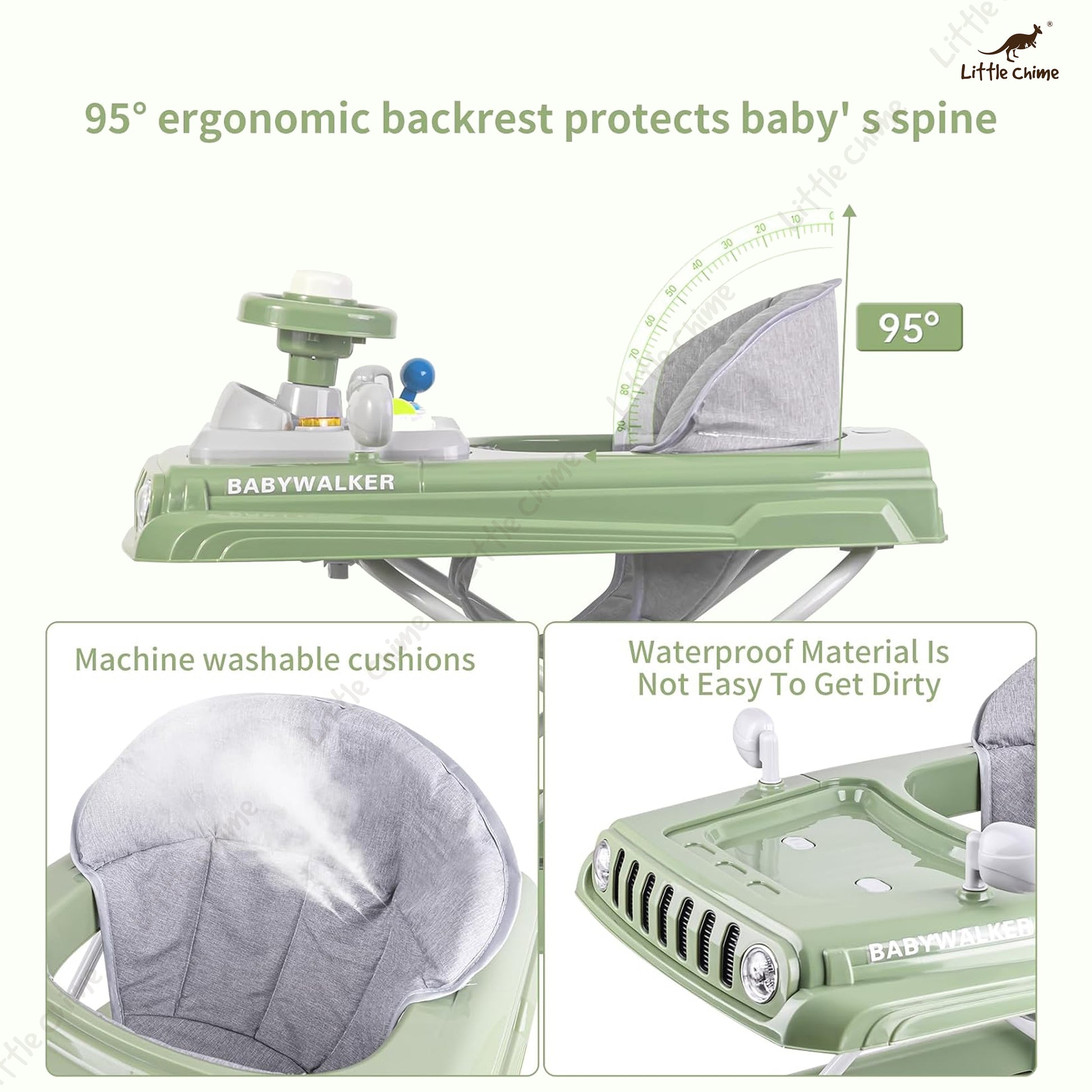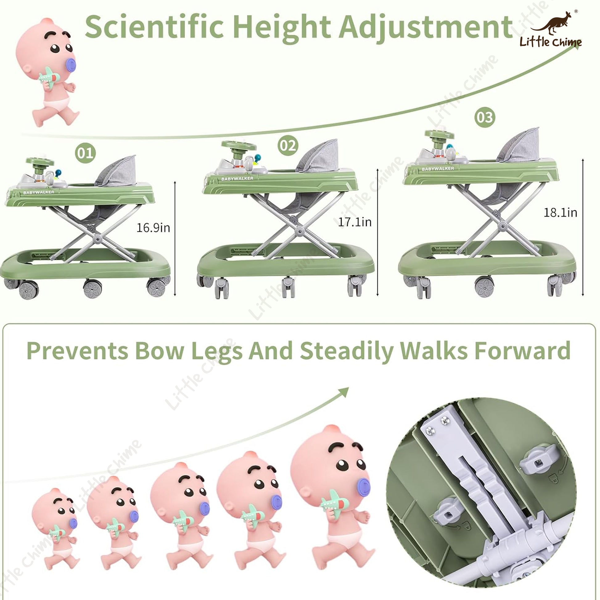 - 2.Foldable, Easy To Store And Carry:It is a foldable baby walker,the support arm of the baby walker can be folded through the seat adjustment,which can be installed and removed in minutes without any tools,and it is easy and quick to store.