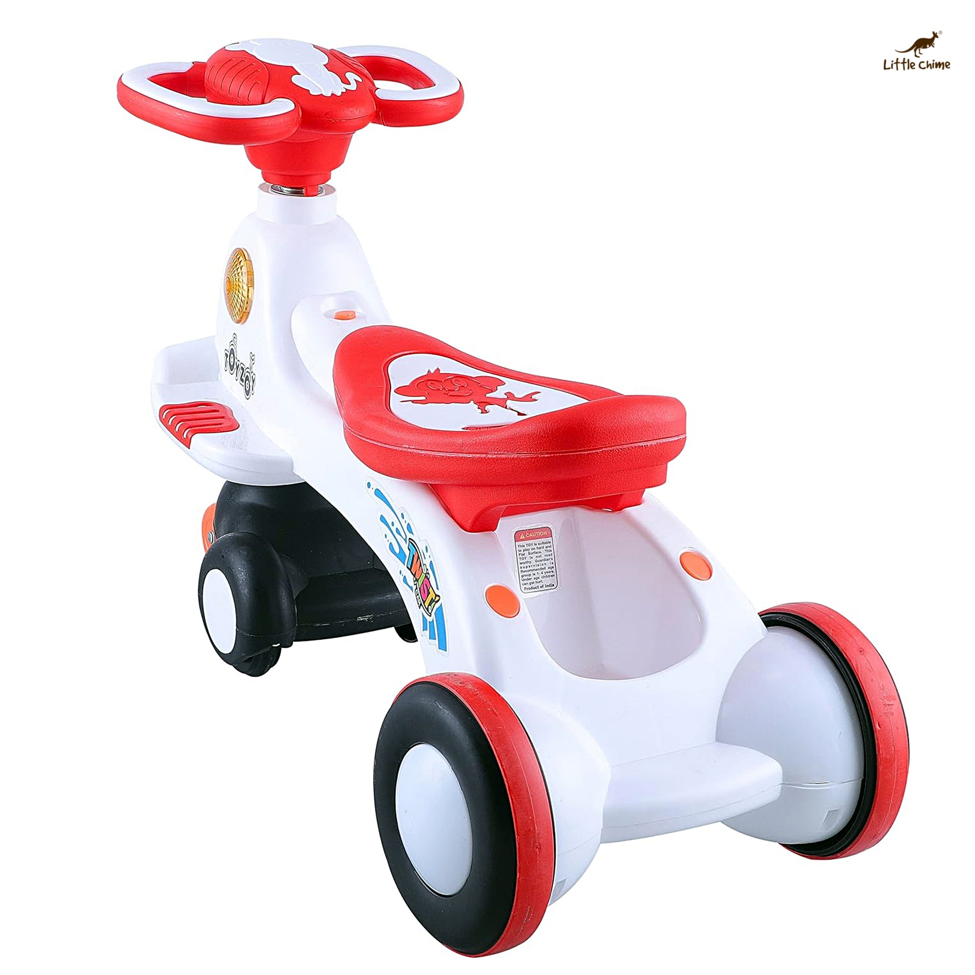 - Steering have lights and sound, Please put Batteries to function the light and sound and, The front small wheels are not for rotation and will not touch the ground With, 360 degree rotation of steering.