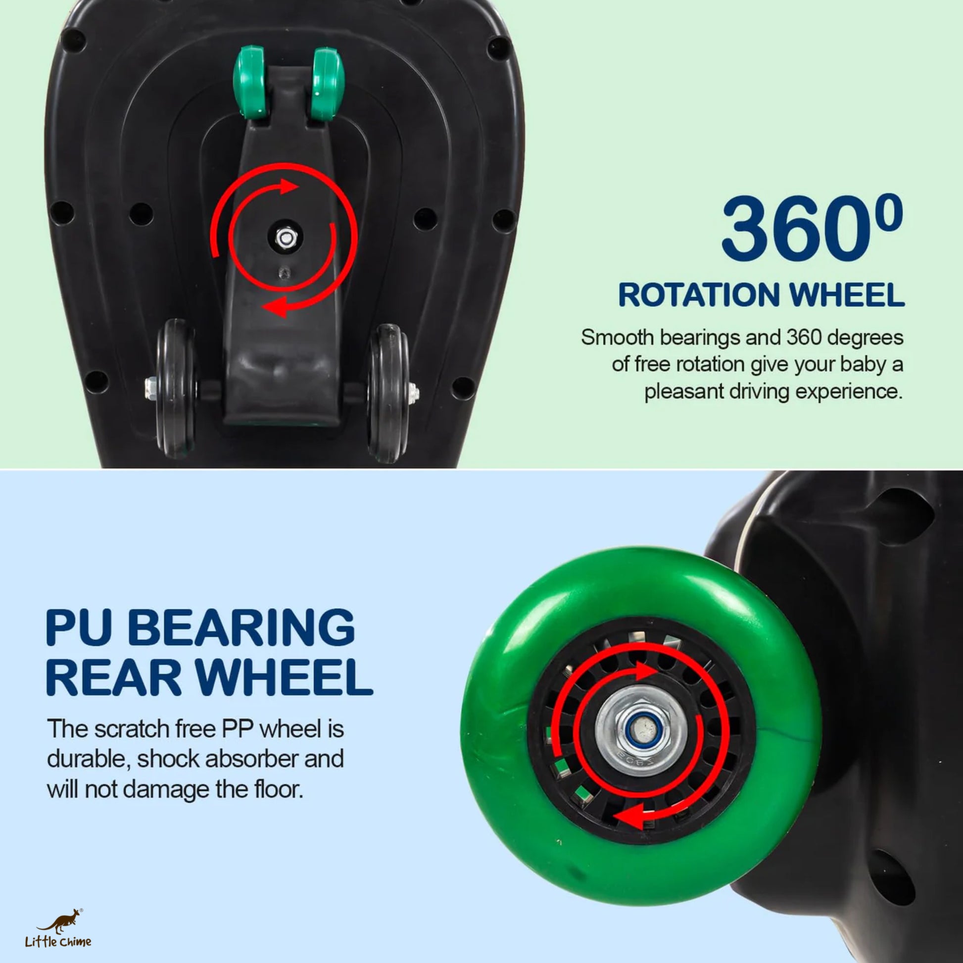 - 【Scratch-Free PP Wheels for Smooth Riding】- The little chime Pluto Magic Swing Car features scratch-free PP wheels that ensure a smooth and gentle ride on various surfaces, providing a comfortable and enjoyable experience for kids as they cruise around.