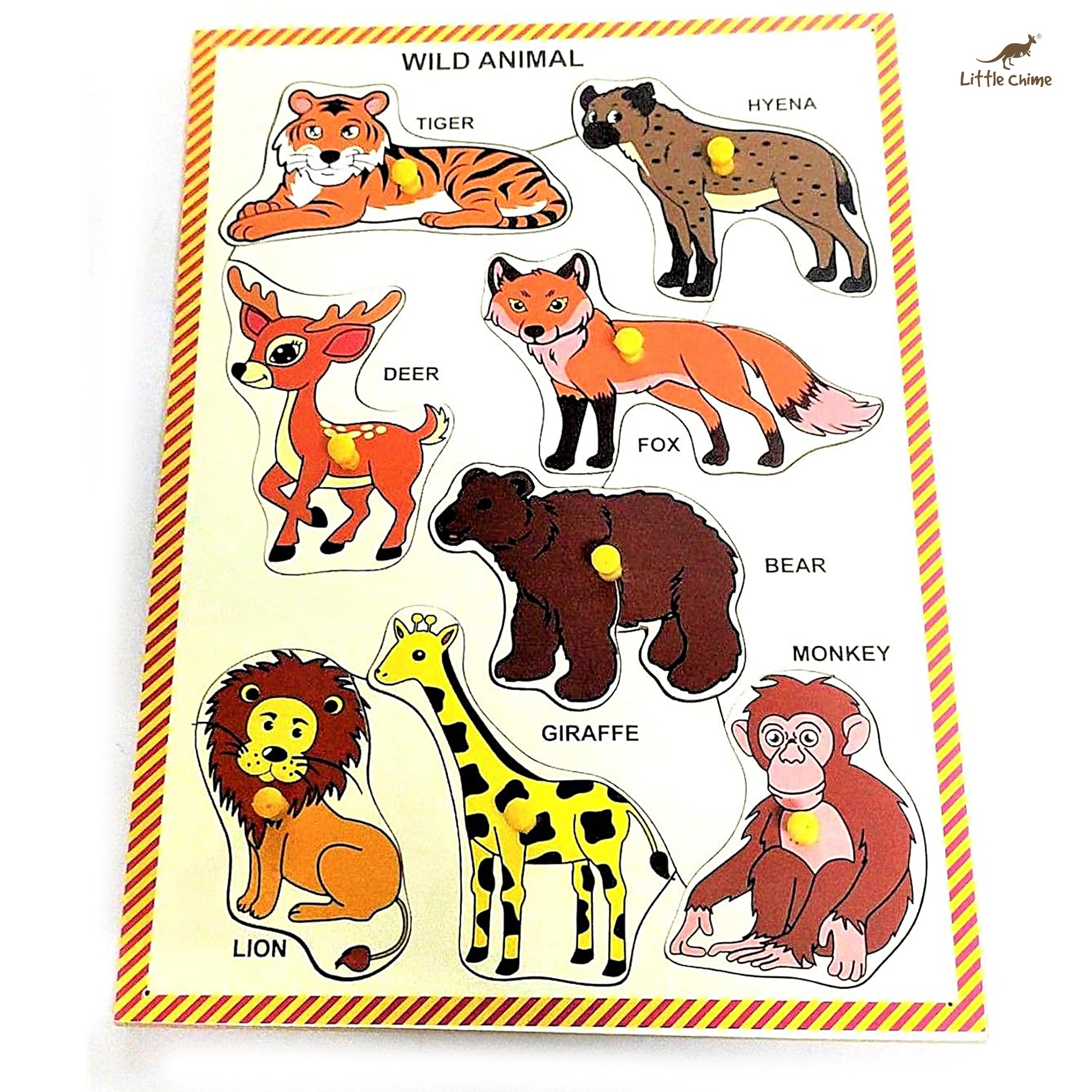 - Novel shape and bright colors are always Children's favorite, they will learn to recognize WILD ANIMALS from these knob puzzles.